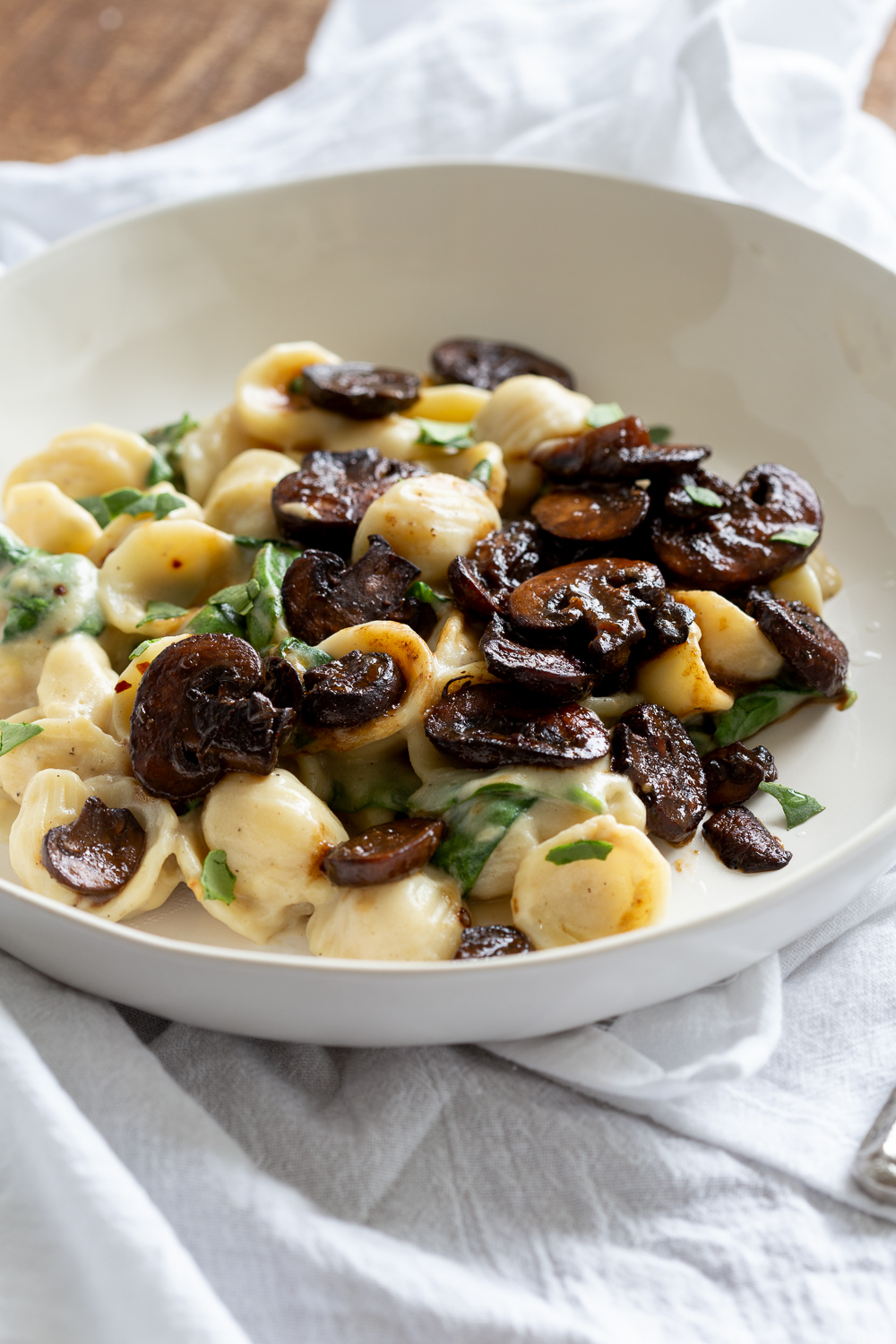 “A quick recipe for vegan mushroom and spinach pasta that is ready in under 30 minutes. Loaded up with sautéed balsamic mushrooms and fresh spinach, all tossed in a heavenly creamy cashew sauce.”. Recipe: VeganRicha.
