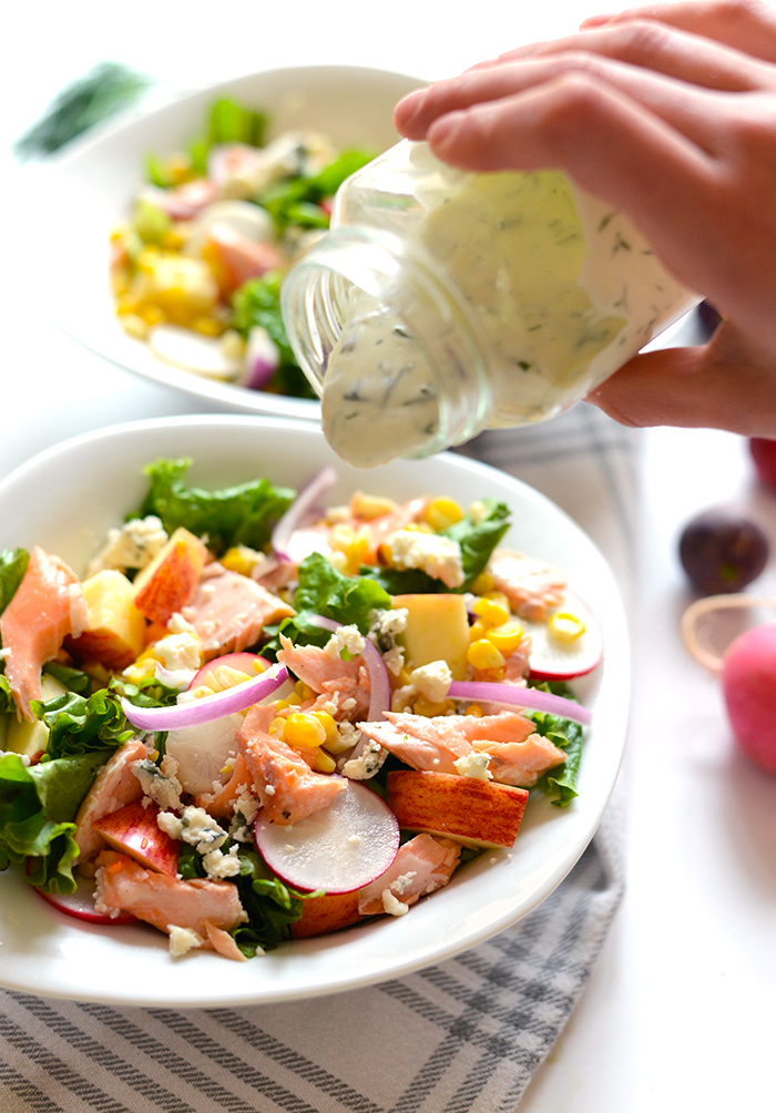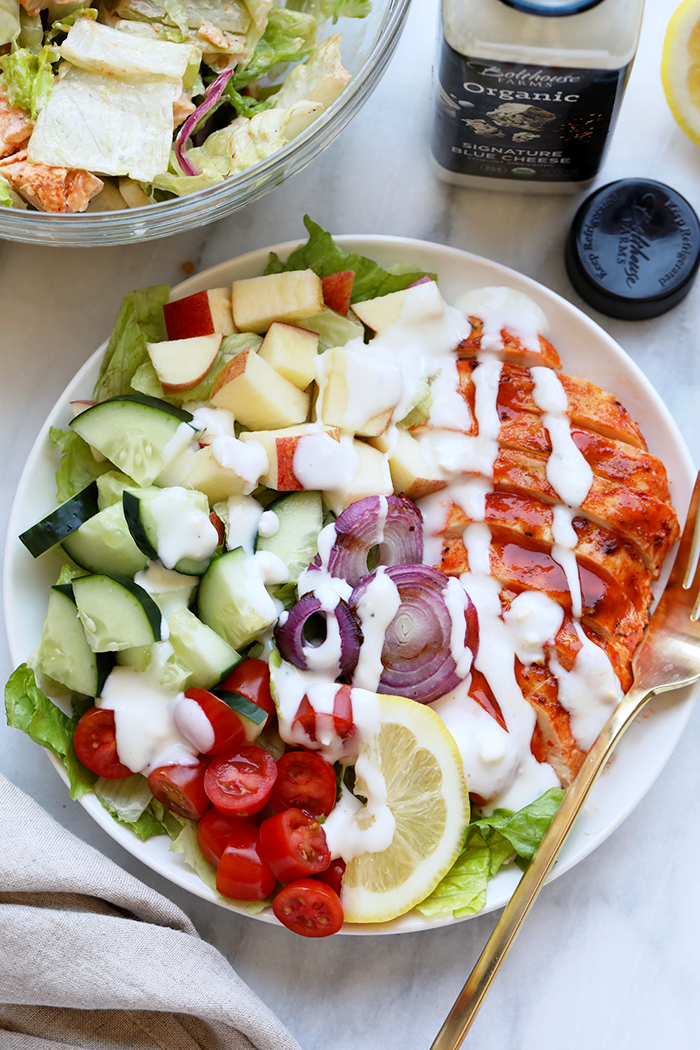 “Get your buffalo chicken salad fix with this lightened-up and easy grilled buffalo chicken salad served with a deliciously indulgent greek yogurt blue cheese dressing. It is the perfect weeknight dinner on a warm night and this grilled buffalo chicken salad is also a great meal prep meal.”. Recipe: FitFoodieFinds.