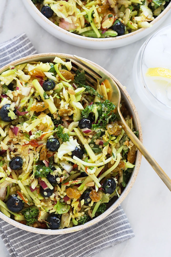 “The superfood salad of all superfood salads is here! Packed with shaved brussels sprouts, kale, blueberries, and nuts and seeds with a ginger turmeric dressing, this Superfood Detox Salad will please a crowd. Make this Superfood Detox Salad today!”. Recipe: FitFoodieFinds.