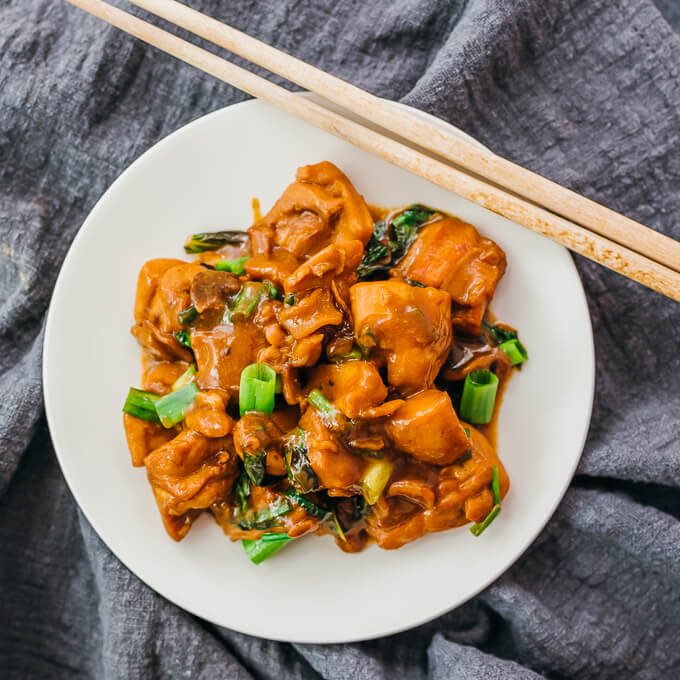 “Instant Pot Chinese chicken thighs with unbelievably tender meat, coated with a rich and flavorful sauce. It’s my low carb/keto and pressure cooker take on the popular dish Three Cup Chicken. “. Recipe: SavoryTooth.
