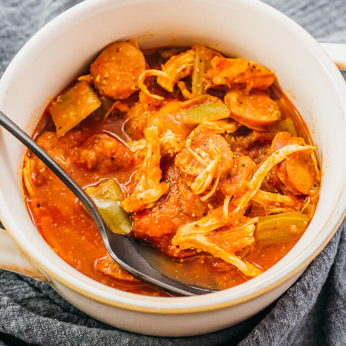 “This chicken and sausage Instant Pot Gumbo is an easy dump-and-go pressure cooker meal, resulting in a thick stew with vegetables and Cajun flavors. Great for keto, low carb, paleo, and whole 30 diets.”. Recipe: SavoryTooth.
