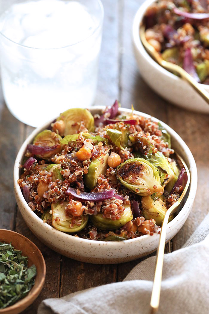 “Whether you’re looking for a healthy holiday side dish or a delicious fall meal, you’re going to love this roasted brussel sprout salad with quinoa!”. Recipe: FitFoodieFinds.