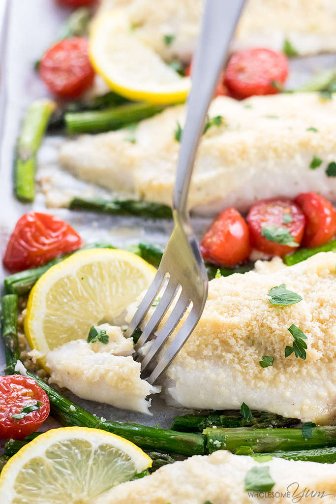 “Just 4 ingredients needed for this easy Parmesan crusted tilapia recipe in the oven. Add veggies for a sheet pan dinner. Only 15 minutes start to finish!”. Recipe: WholesomeYum.