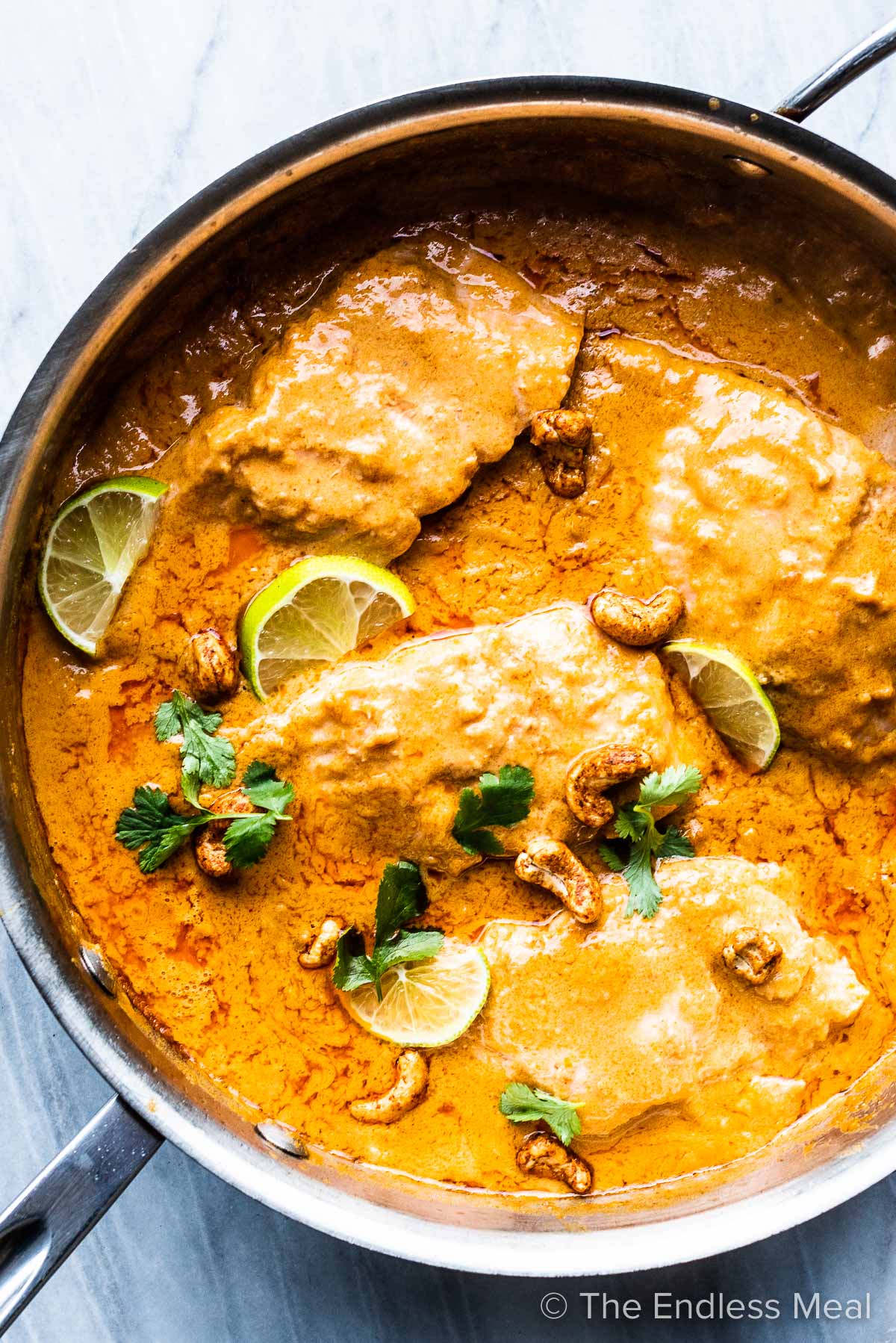 “Cashew Coconut Salmon Curry is an easy to make and crazy delicious fish curry recipe. The salmon is poached in a simple coconut Thai curry sauce that begs to be poured over rice or cauliflower rice. It’s a 20-minute dinner recipe everyone will love!”. Recipe: TheEndlessMeal.