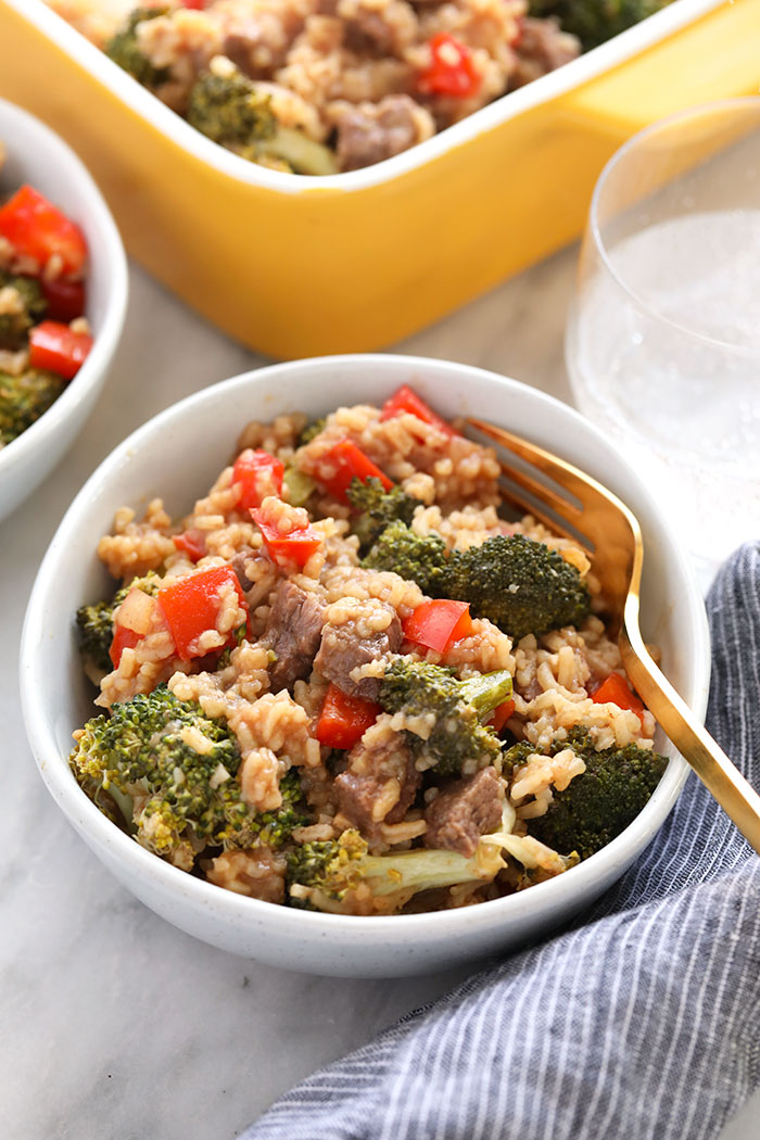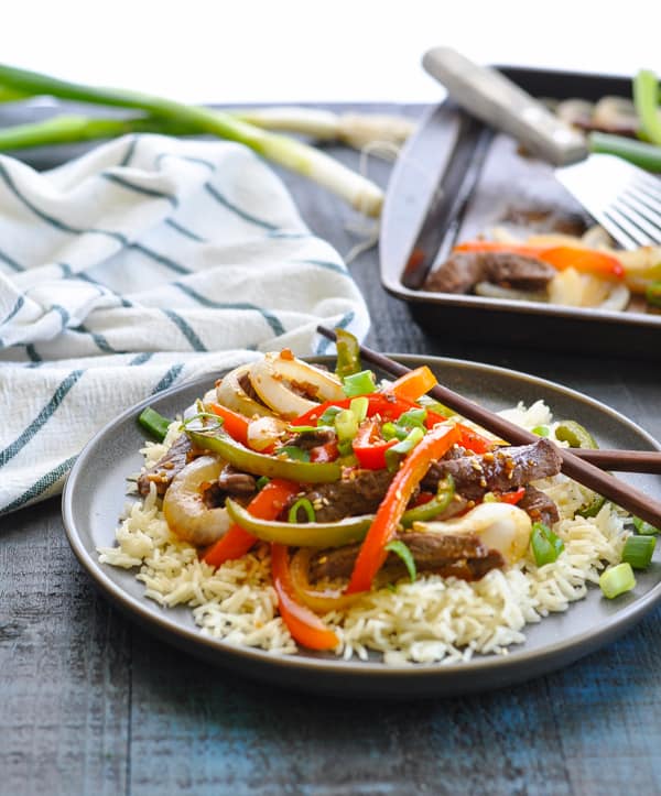 “This Dump-and-Bake Chinese Pepper Steak is an easy and healthy sheet pan dinner recipe that comes together with just 10 minutes of prep! It’s lighter, tastier, and faster than your favorite restaurant takeout.”. Recipe: TheSeasonedMom.