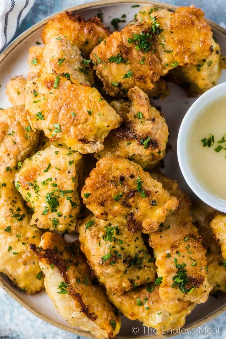 “Healthy Baked Chicken Nuggets aren’t just for kids! They make a quick and easy lunch or dinner that we all love. These gluten-free and paleo chicken nuggets are crispy and delicious and can easily be made ahead and frozen. Perfect for meal prep!”. Recipe: TheEndlessMeal.