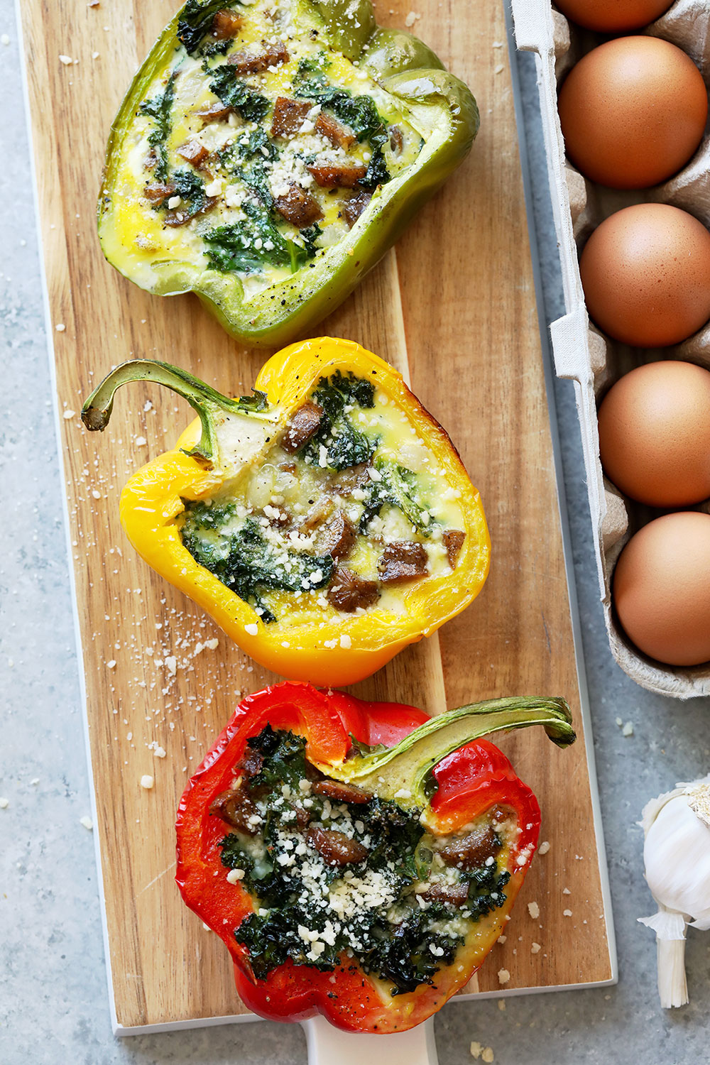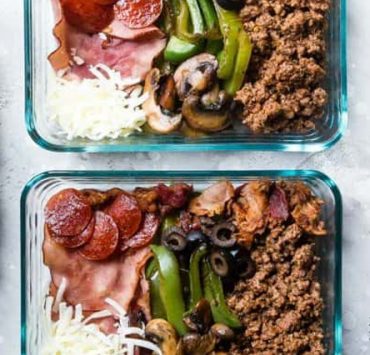 “Start your morning off right with these cheesy breakfast sausage stuffed peppers. You get eggs, vegetables, and sausage all in one delicious stuffed pepper! They are great for meal prep!”. Recipe: FitFoodieFinds.