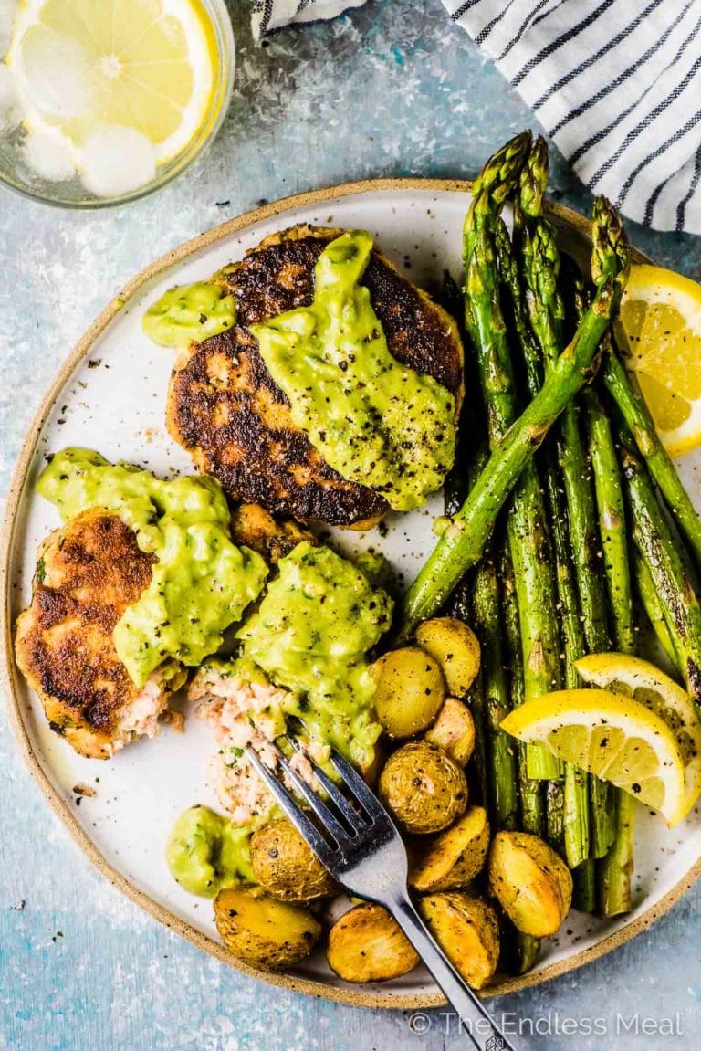 “Salmon Cakes with Avocado Tartar Sauce is a quick, easy, and healthy dinner recipe made with fresh salmon. And if you make small salmon patties they are perfect for a party appetizer.”. Recipe: TheEndlessMeal.