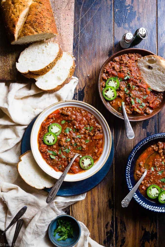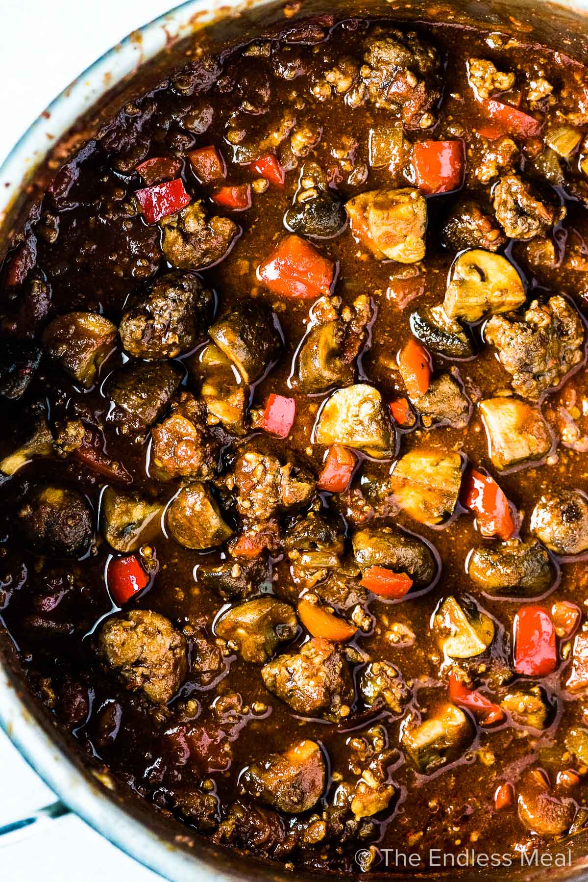 “This sausage chili is loaded with chunks of Italian sausage, ground beef, and sauteed mushrooms. It’s a hearty and meaty chili recipe that is sure to please. We usually make this a beanless chili, but you can put some in if your family loves them. It’s great both ways.”. Recipe: TheEndlessMeal.