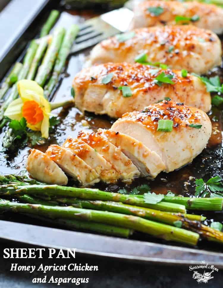 “This Sheet Pan Honey Apricot Chicken and Asparagus is a healthy and fresh Spring dinner that cooks entirely on one tray! The easy weeknight meal requires just 10 minutes of prep for a simple, family-friendly dish that will make your tastebuds sing.”. Recipe: TheSeasonedMom.