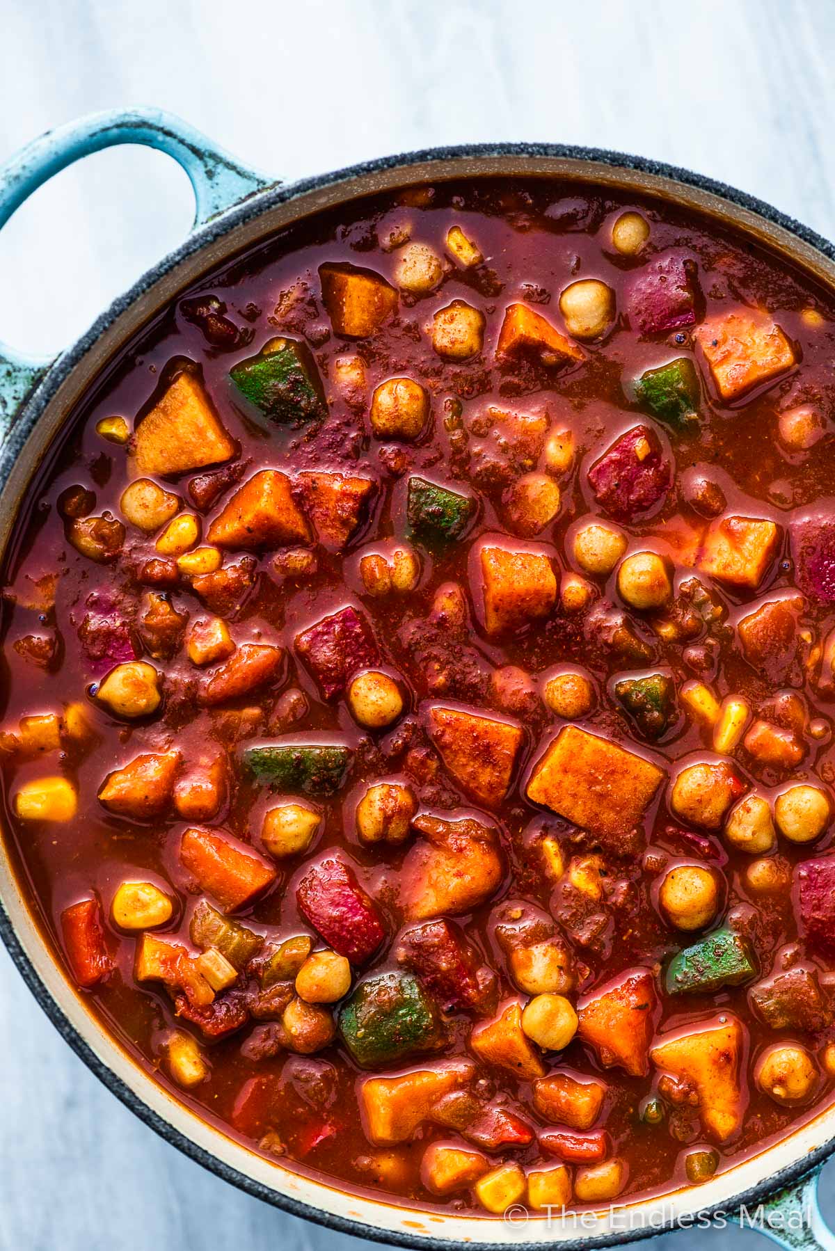 “This sweet potato chili is a vegan chili recipe that’s loaded with tender sweet potatoes and hardy chickpeas. We love this healthy chili recipe as it’s easy to make and is always a hit at the dinner table.”. Recipe: TheEndlessMeal.