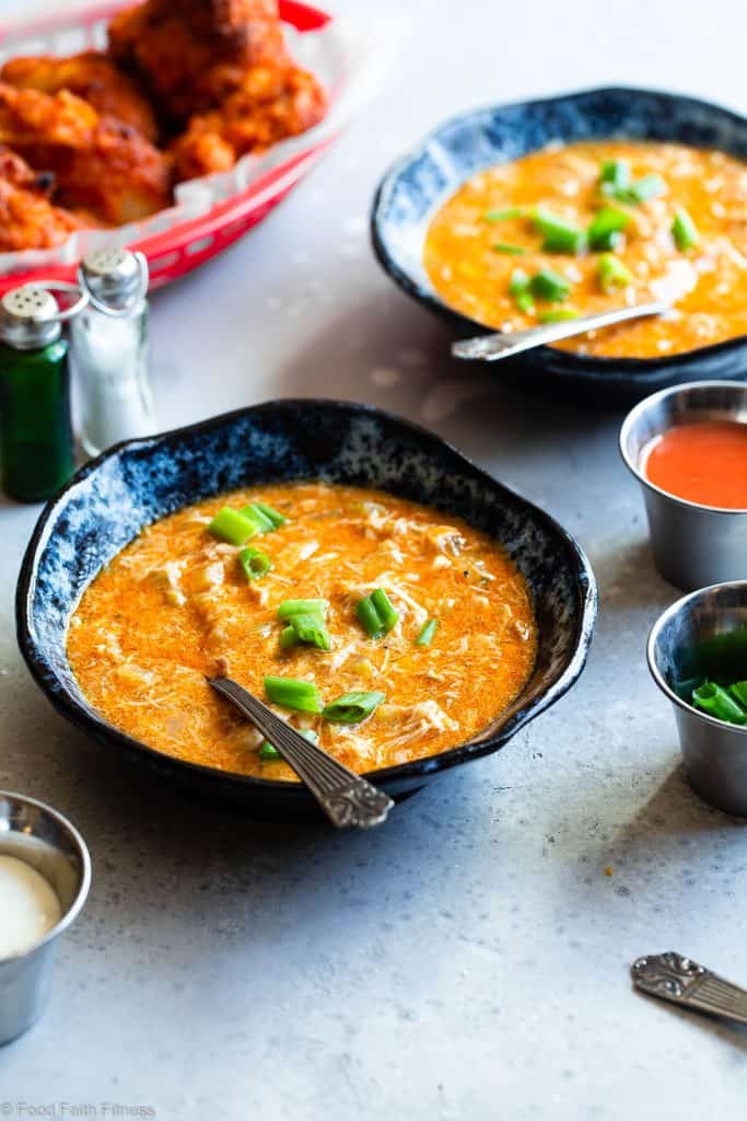 “This Crock Pot Low Carb Buffalo Chicken Soup basically makes itself! It’s a gluten/grain/dairy and sugar free meal that is paleo and whole30 compliant too!”. Recipe: FoodFaithFitness.