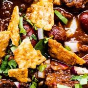 “This steak chili is the best beef chili recipe ever. That’s a big statement, but it’s true. It has a rich flavor and the tender chunks of slow-cooked chuck steak are dreamy. We go easy on the beans, but you can either omit them or add extra as you like. You’ll want to keep this steak chili recipe in your back pocket so you can pull it out every weekend.”. Recipe: TheEndlessMeal.