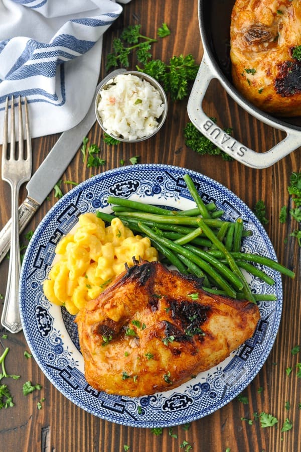 “This Oven BBQ Chicken Breast recipe is an easy dump-and-bake dinner with just 5 minutes of prep! Use either boneless, skinless chicken breasts or bone-in, skin-on chicken breasts for juicy, flavorful meat that’s basted in a sweet-and-sour sauce.”. Recipe: TheSeasonedMom.