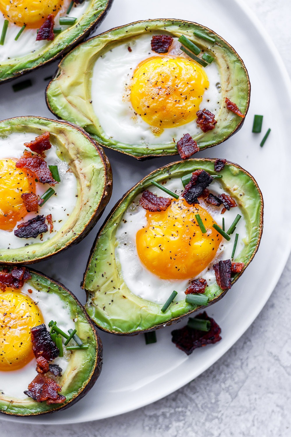 “These avocado baked eggs are an easy low carb breakfast that you can meal prep for the whole week! There is nothing better than a creamy avocado and delicious egg topped with fresh herbs and bacon!”. Recipe: FitFoodieFinds.