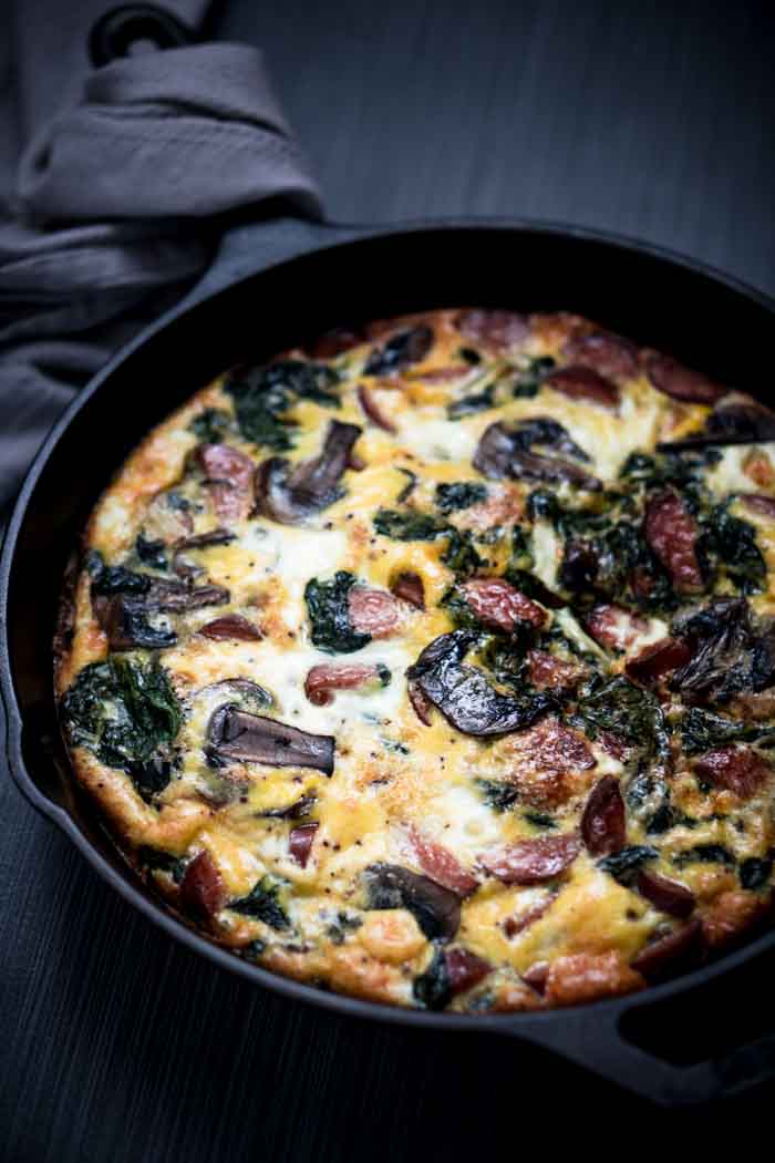 “This smoked sausage frittata recipe was a hit at my house! Everyone has been holed up inside all week with colds and getting my kids to eat anything has been a complete nightmare as a result. Their picky eating game is strong, but they’ve taken it to a whole new level the past few days. Imagine my surprise when they gobbled up this sausage frittata without stopping to pick out the spinach and mushroom first! Could this possibly be our new family favorite?!”. Recipe: Ketogasm.