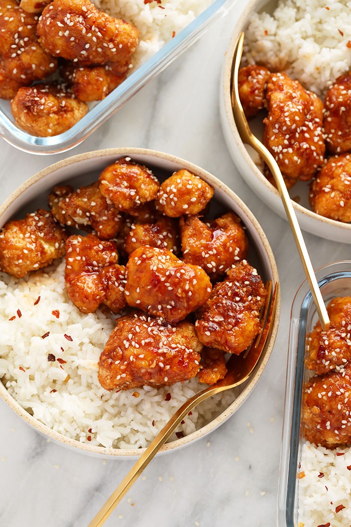“This General Tso’s Cauliflower is a twist on classic takeout but made vegetarian with cauliflower instead of chicken!”. Recipe: FitFoodieFinds.