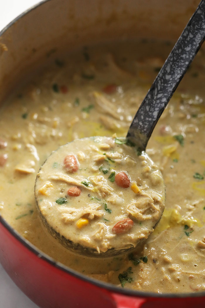 “This White Bean Chicken Chili is a one-pot recipe that’s packed with delicious veggies, shredded chicken and all the spices. Make it creamy with either cream cheese or Greek yogurt, and you’re on your way to the most flavorful white bean chili of your life.”. Recipe: FitFoodieFinds.