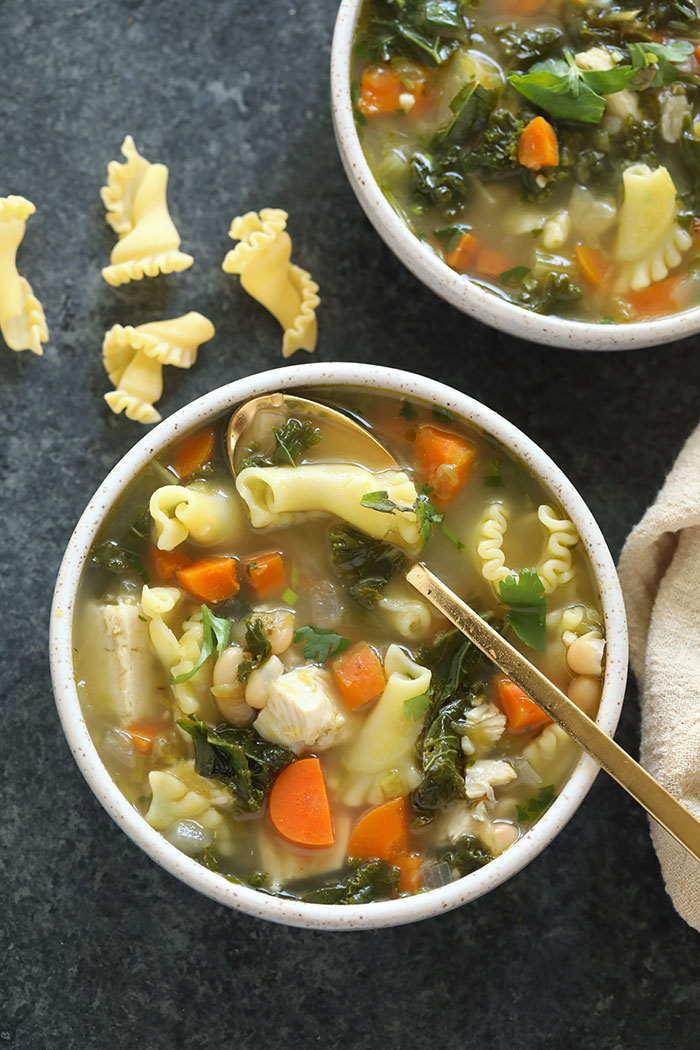 “There is nothing better than a big bowl of this kale soup! All you have to do is throw everything in a pot, let it simmer for 30 minutes, and it will be ready to enjoy all week long!”. Recipe: FitFoodieFinds.