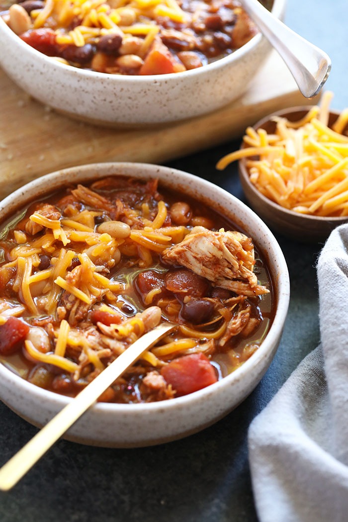 “This Crockpot Chicken Chili is so easy to put together, and made completely in the slow cooker! Plus, this easy chicken chili is packed with protein, fiber, and so much good flavor!”. Recipe: FitFoodieFinds.