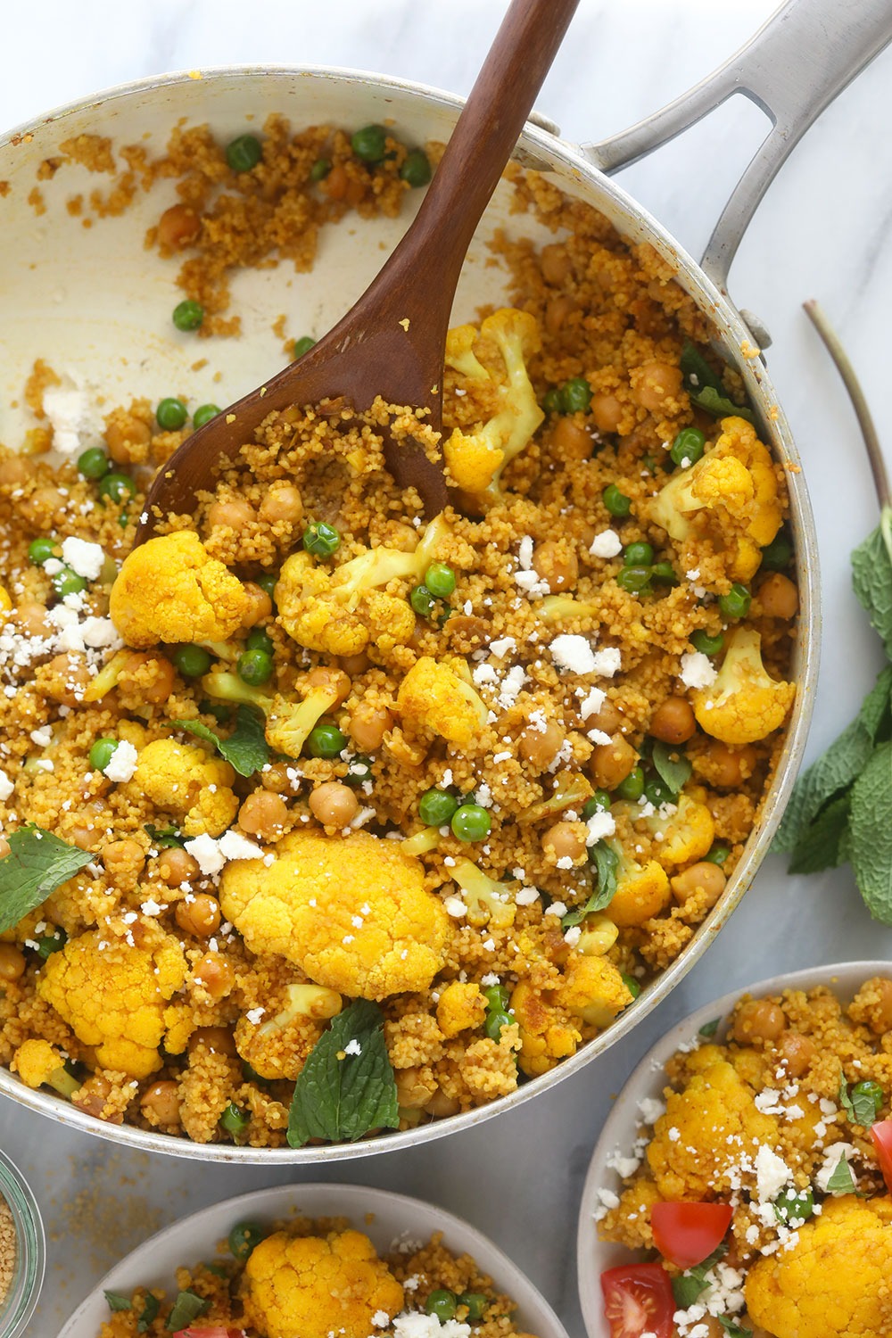 “This gorgeous, anti-inflammatory Moroccan Chickpea Couscous Skillet is a healthy vegetarian meal that’s freezer-friendly!”. Recipe: FitFoodieFinds.