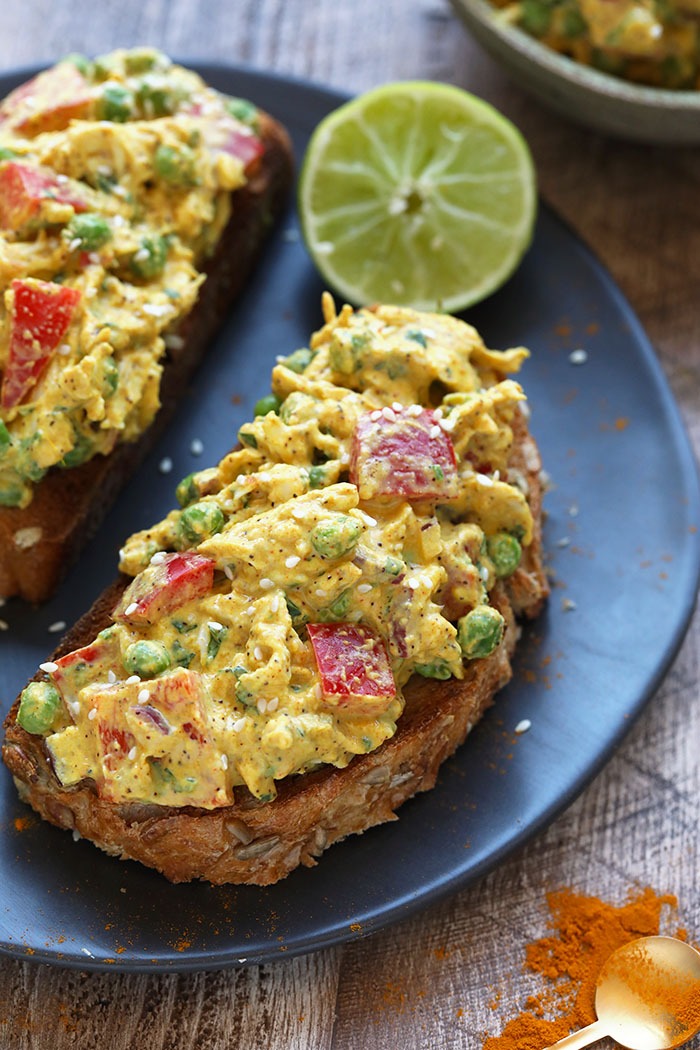 “Coconut Chickpea Curry with mango, broccoli, and basil is the ultimate 30 minute meal. Enjoy this vegan, gluten free curry for meal prep lunch or easy weeknight dinner.”. Recipe: DishingOutHealth.