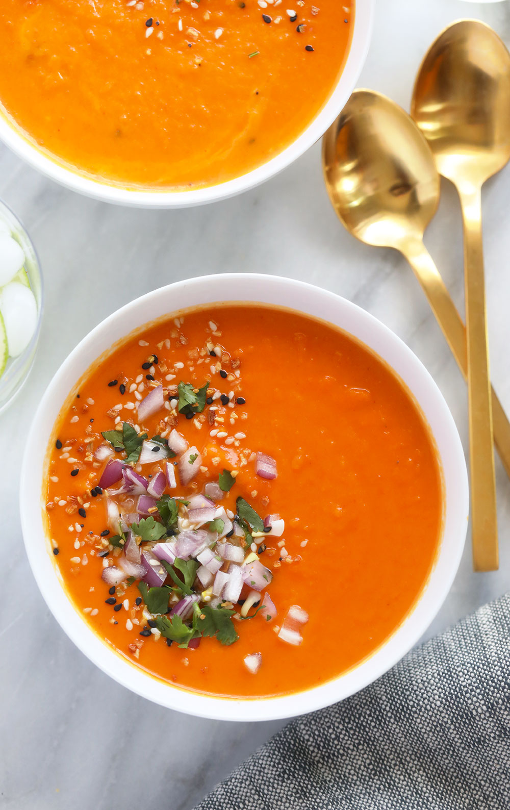 “Beautiful Instant Pot Sweet Potato Carrot Ginger Soup made in under 30 minutes with fresh ginger, coconut milk, and red curry paste.”. Recipe: FitFoodieFinds.