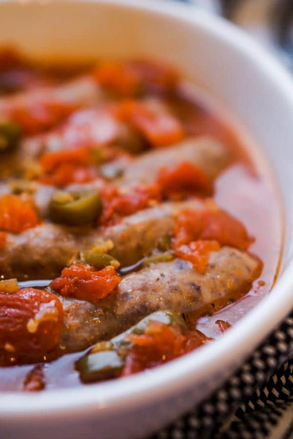“spicy chicken sausage recipe! Huzzah! I know how much you guys all like unfussy, straightforward meal ideas. Mix a few things, throw it in the oven, and voila: dinnertime. If that sounds like your speed, you’re in luck today. I’m going to show you which storebought spicy chicken sausages are perfect for keto and share a fantastic recipe even the worst of cooks can pull off.”. Recipe: Ketogasm.