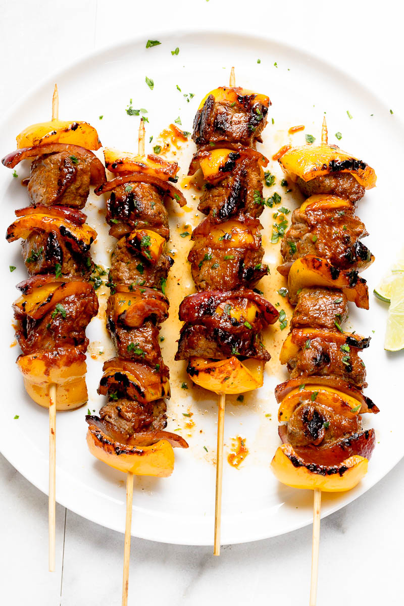 “Thick cut pieces of steak are marinated in a flavorful blend of ingredients and then skewered with peppers and onion and then grilled to perfection to bring you the best steak kebabs! These kebabs are topped with a fresh basil sauce creating a dinner you’re going to crave all summer long!”. Recipe: ChelseasMessyApron.