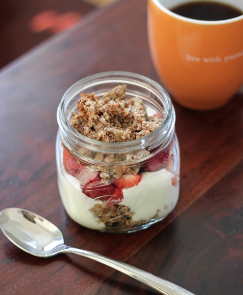 This grain-free banana bread parfait is great with honey and extra fruit.