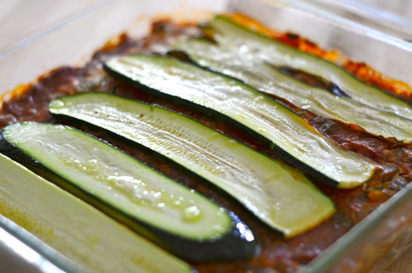 Replacing pasta with zucchini (or courgette) in this recipe makes for a tasty, paleo-friendly dinner.