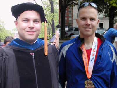 After seeing himself look overweight in a photo, Peter used the combination of exercise and diet to lose weight. He started to get serious about running and to inspire him, made a pact with his wife that they would both run a 4 mile race in the coming months.