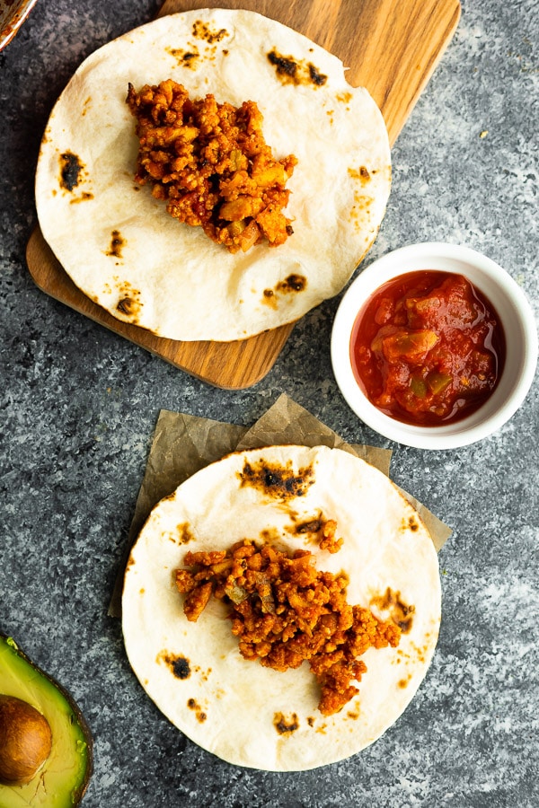 “Easy tofu tacos that have the BEST texture and are ready in 15 minutes. These vegan tacos would work great for meal prep or an easy weeknight dinner.” Recipe: SweetPeasAndSaffron.