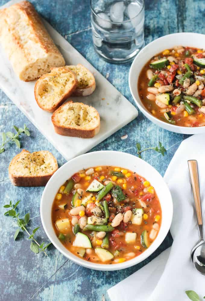 “Summer Stew from Vegan Yack Attack On The Go – an easy vegetable and white bean soup recipe that uses the best of summer garden offerings. It all comes together in less than 30 minutes!” Recipe: VeggieInspired.
