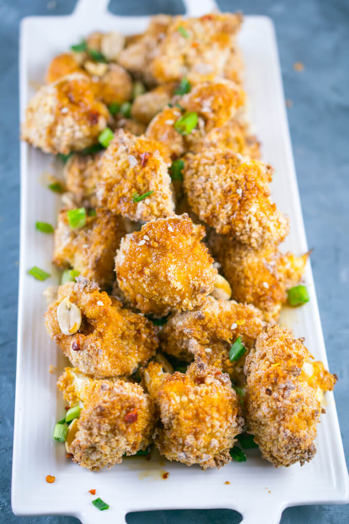 “These Thai peanut cauliflower wings are savory, crispy, and hard to stop eating. The recipe is made by dipping cauliflower in a peanut butter curry batter and baking it (not frying it!) until golden brown. Vegan as always and can easily be made gluten-free!” Recipe: YupItsVegan.