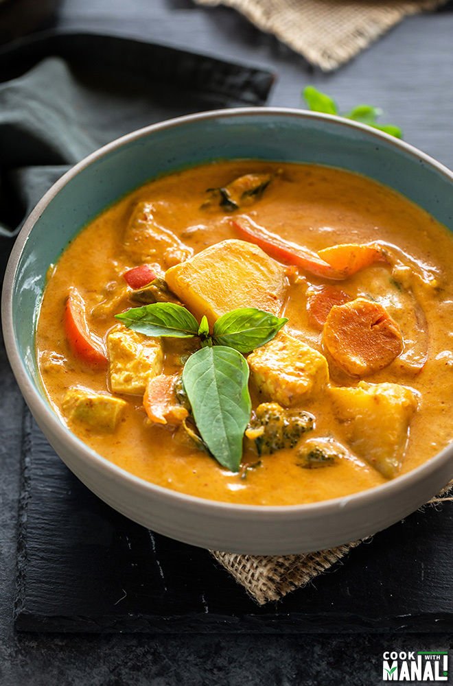 “Vegan Panang Curry loaded with flavors and vegetables! This one pot dish makes a comforting meal and pairs well with quinoa or rice.”. Recipe: CookWithManali.