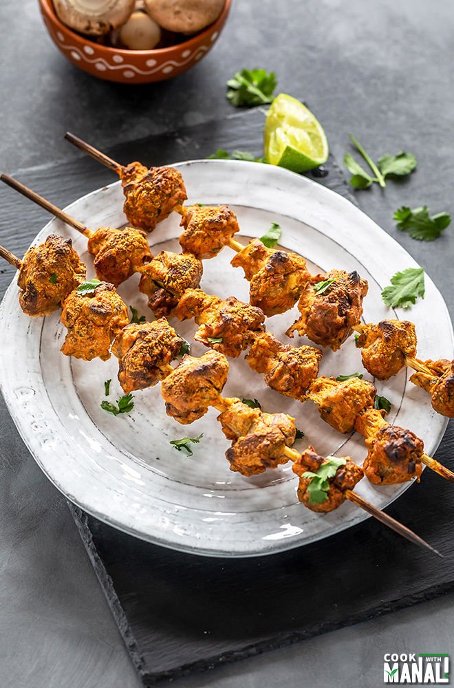 “Flavorful Mushroom Tikka makes a delightful vegan appetizer! Mushrooms are coated with a almond milk yogurt based marinade and then roasted in the oven until cooked and little charred.”. Recipe: CookWithManali.