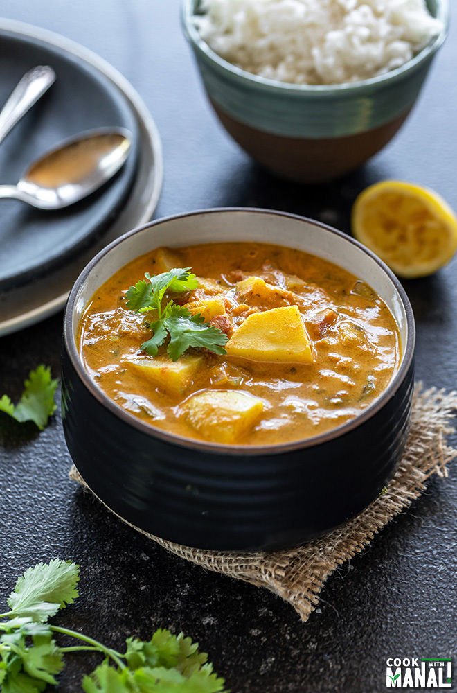 “Packed with flavors, this Vegan Potato Curry is made in the Instant Pot and makes a delicious meal for busy days! Coconut milk gives this curry a mild sweet flavor which pairs beautifully with the spices.”. Recipe: CookWithManali.