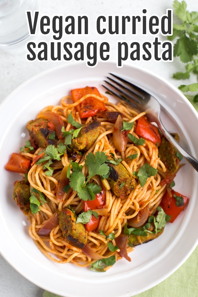 Vegan Curried Sausage Pasta