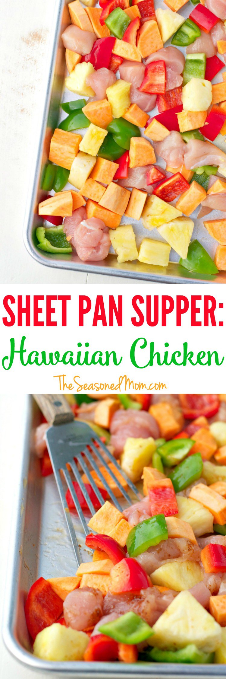 “This Hawaiian Chicken with Sweet Potatoes, Peppers, and Pineapple is an easy dinner that cooks entirely on one tray! It’s a healthy Sheet Pan Supper that the whole family will love — with only a few dishes to wash at the end!” Recipe: TheSeasonedMom.