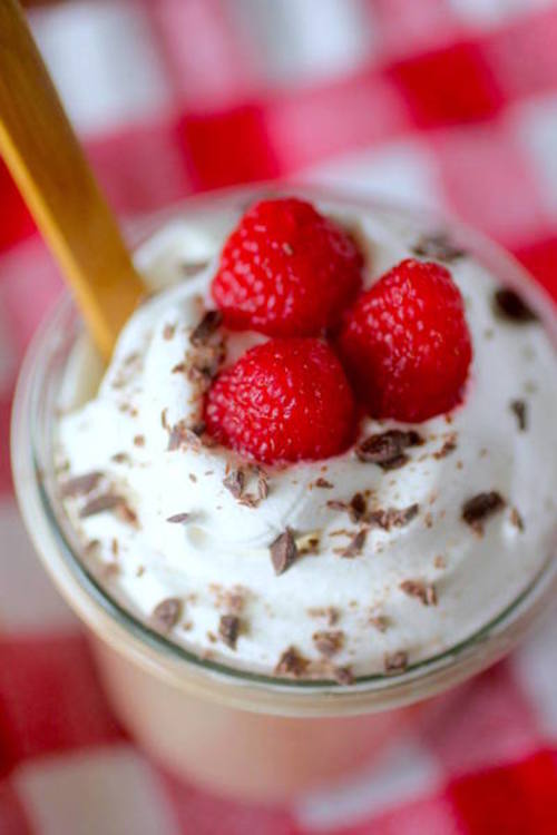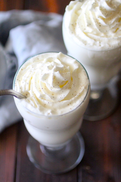 “This copycat Starbucks Vanilla Bean Frappuccino is a protein packed version of their creamy vanilla shake. Now you can save money, sugar, and unwanted calories with this homemade version!” Recipe from DashingDish.