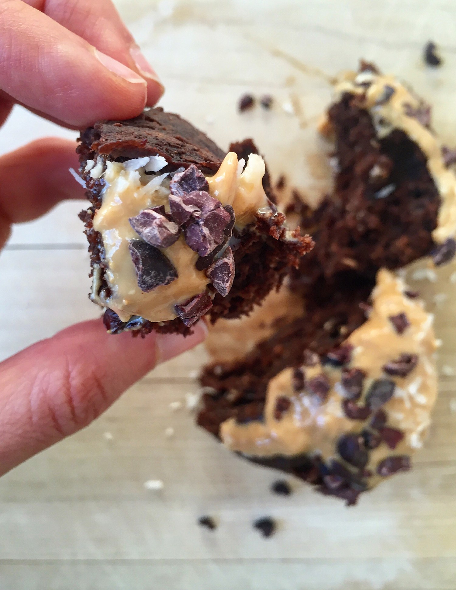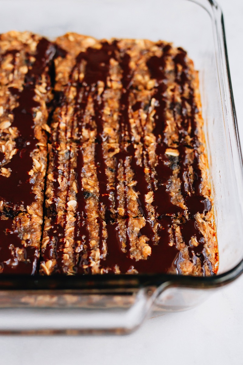 “Though I love peanut butter and chocolate together, I opted for a caffeine free and nut free version, just for kicks 🙂 I admit, these bars are quite addicting and were the perfect pre and/or post workout snack when I was needed something quick. They taste SO, SO yummy.” Recipe from NaturalNoshing.