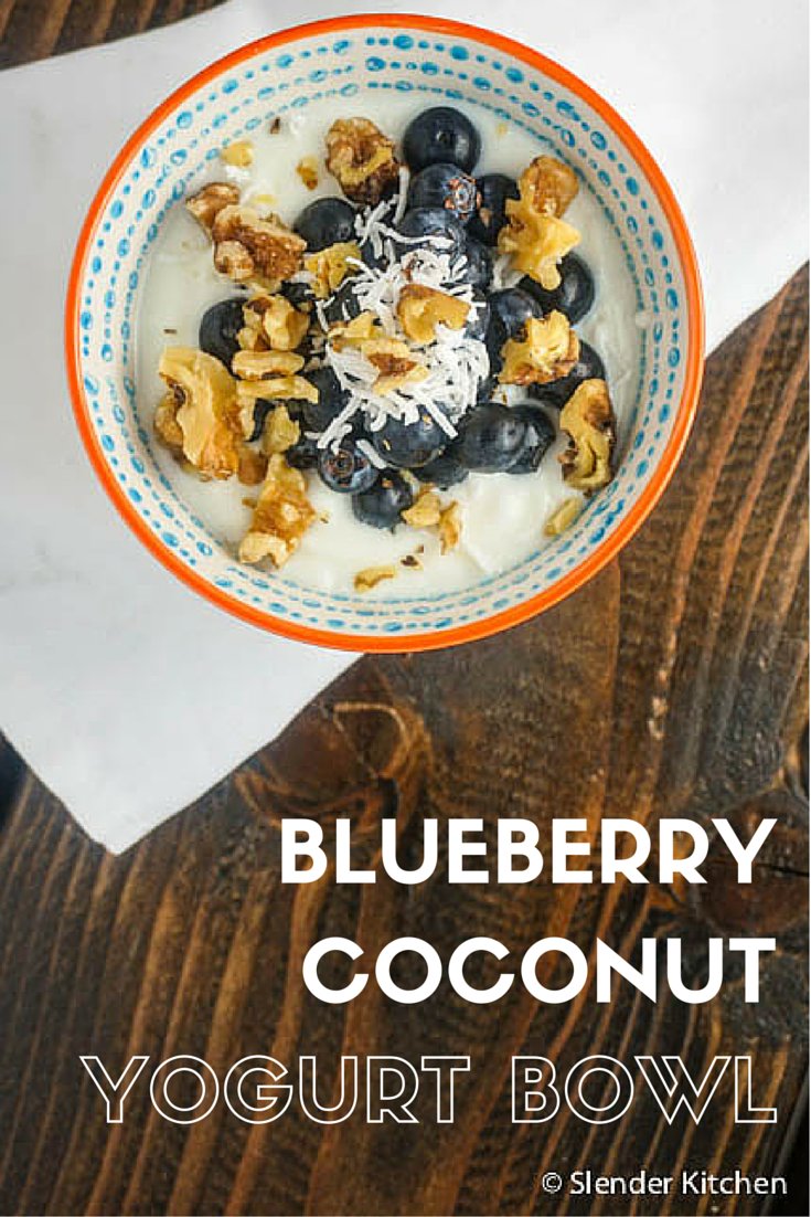 “Greek yogurt bowls are one of my go-to breakfasts because they are so simple. Start with the yogurt, add fruit, add nuts or whole grains, something sweet, and you are ready to eat. This bowl has a delicious combination of blueberries and yogurt paired with coconut and walnuts. Consider toasting the coconut and walnuts for extra flavor. You could also add chia seeds, flax seeds, or experiment with different yogurt flavors.” Recipe from SlenderKitchen.