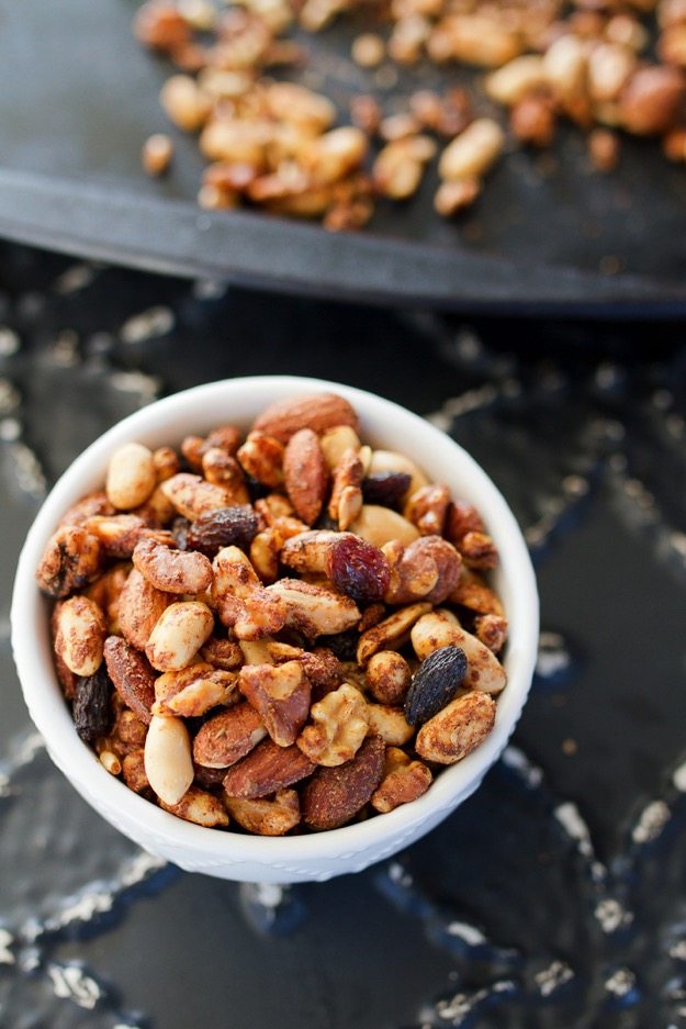 “A crunchy snack mix featuring a blend of nuts and seeds coated with cajun-inspired seasonings. Add raisins for some sweetness or skip them for a low-carb snack! This Cajun Trail Mix is perfect for parties, game-day or mid-afternoon snacking.” Recipe from EatingBirdFood. (Higher Calorie Option)