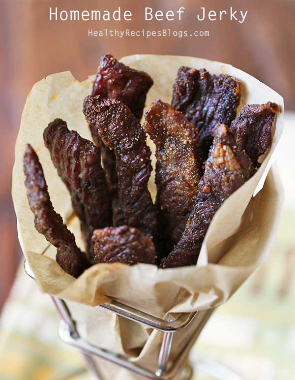 “Beef jerky is one of my favorite snacks, but it’s very difficult to find commercial beef jerky that isn’t made with soy sauce and sugar. Most beef jerkies contain quite a few carbs per serving, in addition to an insanely high amount of sodium. This homemade beef jerky is not only tastier than commercial versions, it’s also made with no soy sauce and no sugar.” Recipe from HealthRecipeBlogs.