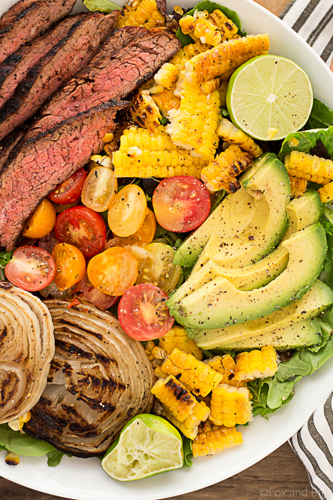 “This Mexican Grilled Flank Steak Salad with Honey Lime Dressing has a smoky spiced grilled flank steak, charred corn, grilled onions, creamy avocado and a zingy honey lime dressing. Quick to make inside on the stove or outside on the grill!” Recipe: foxandbriar.com