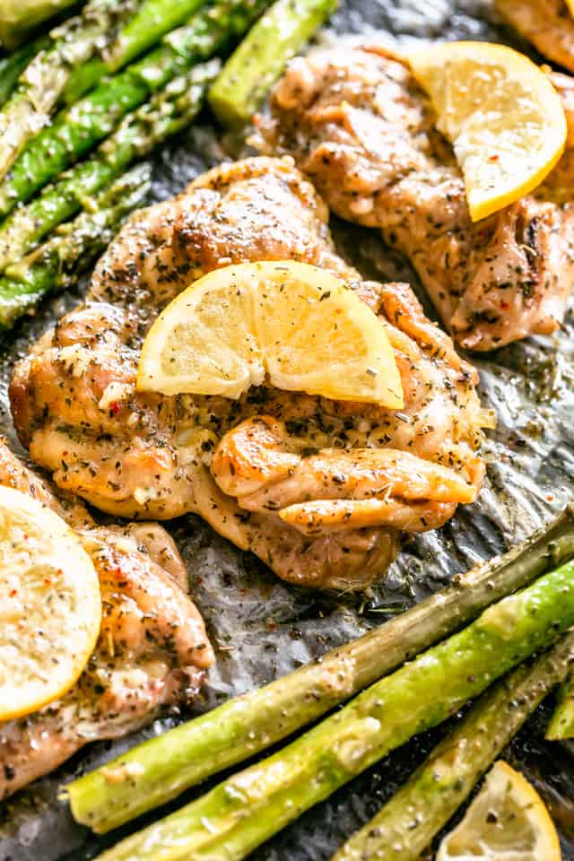 One Pan Lemon Garlic Butter Chicken Thighs and Asparagus