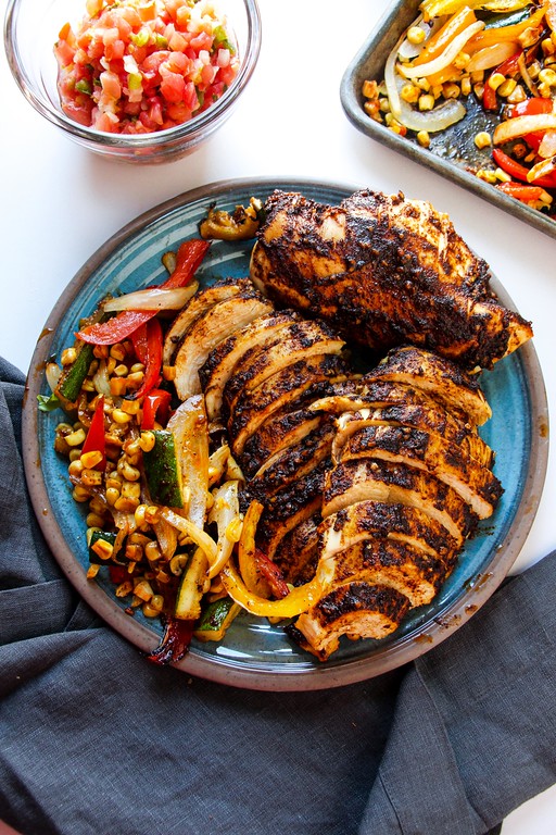 “Chicken and fajita veggies seasoned and drizzles with olive oil and then baked to perfection on a sheet pan. So much flavor and one of the easiest meals!” Recipe: LayersOfHappiness.