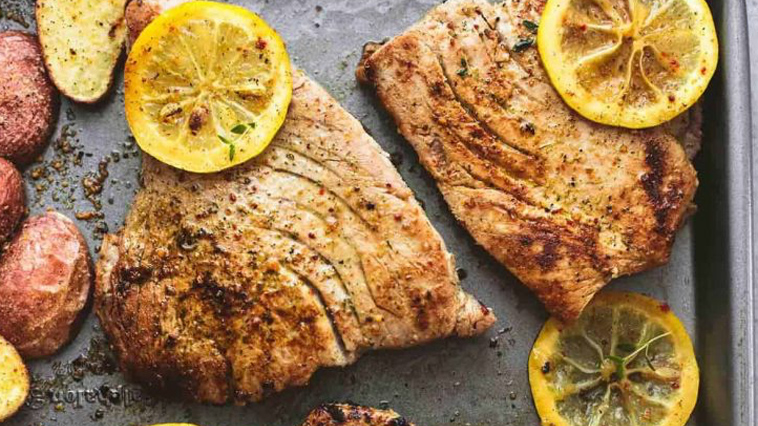 Sheet Pan Lemon Herb Tuna Steaks And Potatoes