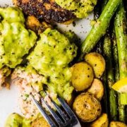 “This 5-Ingredient Sheet Pan Chicken and Potatoes takes two common dinner items to next-level deliciousness — all in one pan for easy cleanup!”. Recipe: LeCremeDeLaCrumb.